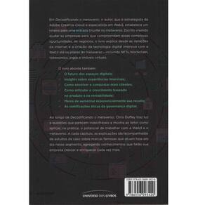 Descubra as oportunidades de negócios rentáveis dentro do metaverso e saiba como e por que você deve envolver sua empresa com a Web3 hoje mesmo. Em Decodificando o metaverso, o autor, que é estrategista da Adobe Creative Cloud e especialista em Web3, estabelece um roteiro para uma entrada triunfal no metaverso. Escrito visando ajudar as empresas para que compreendam essas complexas oportunidades de negócios, o livro explica desde as iterações da internet e a criação da tecnologia digital imersiva com a Web3 até os pilares do metaverso ? incluindo NFTs, blockchain, tokenomics, jogos e imóveis virtuais.