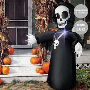 Decoração caveira da morte inflável 120cm halloween ydh dê um toque de diversão sinistra à sua decoração de halloween com a adição dos nossos produtos infláveis imagine a reação dos seus convidados quando se depararem com essa figura intrigante, envolvendo todos com seu charme peculiar. Tem um design complexo, incorporando elementos clássicos de halloween como fantasmas, abóboras e um chapéu de bruxa. Seu design único e interessante pode adicionar uma vibração divertida e assustadora à sua decoração de halloween, tornando a perfeita para uso interno ou externo. Com iluminação led assustadora e design sinistro, este enfeite fará todos tremerem de medo. Reutilizável e durável: projetado para uso repetido, garantindo diversão duradoura. Características: - dimensões aproximadas: 120cm de altura, 90cm de largura e 50cm de comprimento; - voltagem: bivolt; - resistente a água; - conteúdo: 1 boneco inflável com ventilador embutido, luzes inflável, estacas, cordões e cabo de energia; - ideal para decoração de jardim de quintal familiar, modelo de decoração de palco; - fácil de inflar: basta colocar na tomada para inflar o enfeire e em poucos minutos, facilitando a montagem e desmontagem da decoração. -imagens meramente ilustrativas- atenção: a cor do produto pode variar de acordo com o monitor atenção: o fabricante pode alterar a cor de alguma parte do produto sem aviso prévio. Homologação Inmetro: CE-BRI/ICEPEX-I 02405-74-2