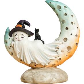 Material: Resina Tamanho: 11,5 cm × 7 cm × 12 cm Peso: 170 g ['Charming Moon Ghost Design — Esta escultura de resina apresenta um fantasma sonolento usando um chapéu de bruxa, descansando em uma lua crescente com um gatinho preto, criando uma cena sonhadora de jardim de Halloween. ', 'Artesanato em resina premium — Feito de resina de alta qualidade, este enfeite de jardim é à prova d'água, resistente ao desbotamento e durável para uso prolongado em decoração interna e externa. ', 'Perfect Seasonal Accent — Ideal para pátios, gramados, salas de estar ou prateleiras de jardim, esta figura aprimora sua exibição de Halloween com seu estilo fofo e tranquilo. ', 'Detalhes requintados pintados à mão — Os tons suaves da lua, o expressivo rosto de fantasma e o acabamento texturizado refletem uma arte delicada e uma sensação de tranquilidade mágica. ', 'Tamanho compacto de tela — Medindo 11,5 × 7 × 12 cm e pesando 170 g, esta estátua leve cabe facilmente em mesas, parapeitos de janelas ou cantos externos para decoração festiva.']
