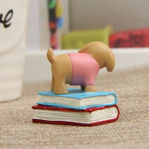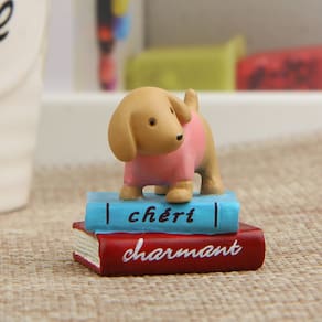 Material: Resina Tamanho: 3 × 3,5 cm Peso: 17 g ['Adorável escultura de cachorro: esta encantadora estatueta de resina para cães está divertidamente empoleirada sobre livros coloridos, trazendo um toque delicioso de capricho e diversão ao seu jardim, pátio ou mesa. ', 'Material de resina durável: feita de resina de alta qualidade, esta escultura de cachorro em miniatura é resistente às intempéries e construída para suportar as condições externas, tornando-a perfeita para decoração de jardins e interiores. ', 'Decoração versátil de jardim e mesa: perfeita para um jardim, pátio, parapeito de janela ou até mesmo como uma adição divertida à sua mesa ou prateleiras, esta figura de cachorro adiciona uma atmosfera alegre e alegre a qualquer espaço. ', 'Design caprichoso: com um cachorro fofo em uma camisa rosa, em pé sobre livros com as palavras “chéri” e “charmant”, esse design divertido adiciona um toque divertido e colorido ao ambiente. ', 'Tamanho compacto: com apenas 3 × 3,5 cm e pesando apenas 17 g, esta pequena estatueta de cachorro se encaixa perfeitamente em qualquer espaço pequeno, tornando-a um ótimo complemento para qualquer canto da sua casa ou jardim.']
