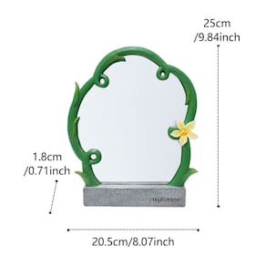 Material: Resina Tamanho: 20,5* 1,8* 25 cm Peso: 602 g ['Enchanted Vine Design — Com uma moldura extravagante em forma de videira com um delicado toque floral, este espelho adiciona um charme de conto de fadas à decoração de jardins ou interiores. ', 'Resin Craft Frame — Feita de resina durável, a escultura apresenta detalhes frondosos pintados à mão e um acabamento verde natural para uma estética terrosa e florestal. ', 'Peça de decoração versátil — ideal para mesas de pátio, penteadeiras, entradas ou prateleiras decorativas, aprimorando tanto os temas do jardim quanto os interiores inspirados na fantasia. ', 'Suporte de base resistente — Construída com uma base estável, a estátua de espelho fica segura em superfícies planas, perfeita como ornamento de peça central ou tela de destaque. ', 'Estética inspirada na natureza — complementa a decoração floral, jardins de fadas e ambientes rústicos com sua forma orgânica, adequada para colecionadores de ornamentos artísticos de jardins.']
