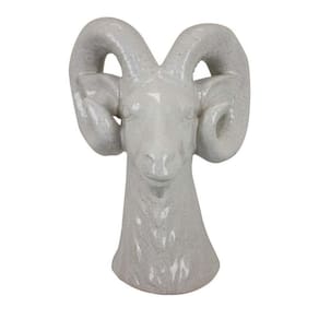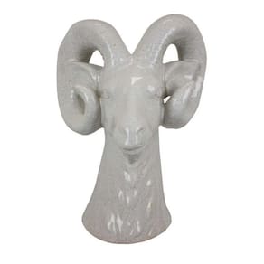 Decoração de mesa Benjara Accent, design forte de cabeça de carneiro, cerâmica branca de 14 polegadas