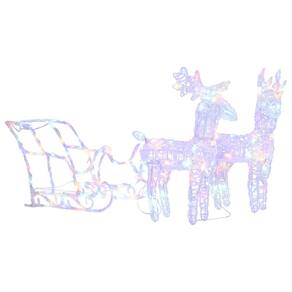 Decore seu jardim ou casa com esta coleção exclusiva. Esta decoração de Natal de 2 renas e trenós combinada com luzes coloridas realça a verdadeira beleza da temporada!