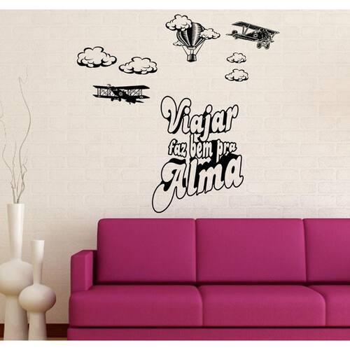 Decoração de Parede Avião e Balão com Frase Viajar faz Bem