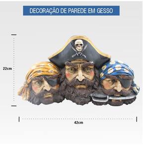 Leve realismo e originalidade para seu ambiente com esta incrível peça decorativa de parede com tema 3 Piratas / Bucaneiros. Produzida artesanalmente no Brasil, feita em gesso de alta qualidade e com pintura manual rica em detalhes. Essa peça transmite expressividade nas feições do Barba Negra mais 2 piratas, criando uma atmosfera temática cheia de personalidade.