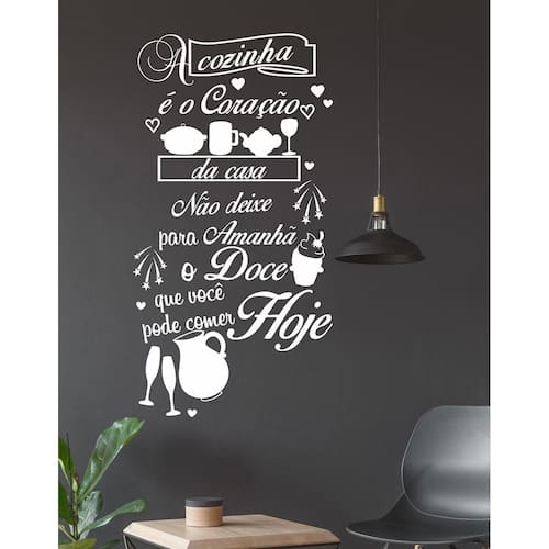 Adesivo decorativo de parede frase cozinha é o coração Tamanho alt.Xcomp. 90x47 cm