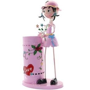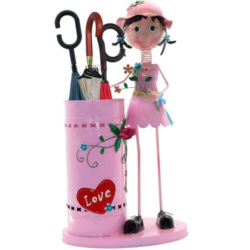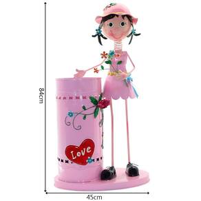 Decoração Enfeite Boneco Escultura de Metal com Porta Guarda Chuva Rosa 84cm -