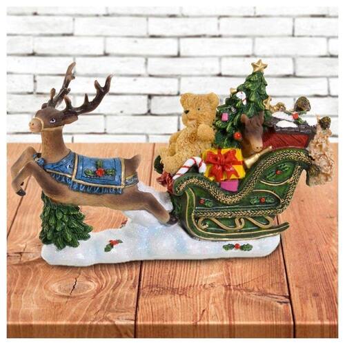Decoração Enfeite Natal Ursinho Natalino Com Trenó Iluminado 26cm