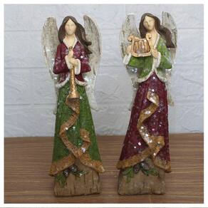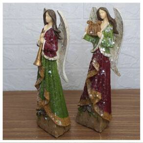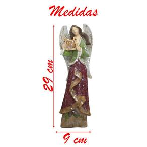 Produto: - 01 Decoração Estatueta Natalina Anjo Da Harpa Em Resina 29cm - 01 Estatueta Natalina Anjo Flautista Em Resina 29cm