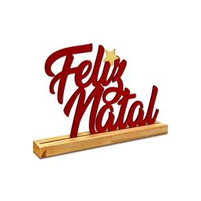 ESPECIFICAÇÕES - Marca: Moai Shop - Modelo: Lettering Feliz Natal - Cor: Vermelho e Dourado - Tema: Natal, Ano novo - Material: Madeira Pinus, MDF e acrílico. - Tamanho: 25 x 17 cm