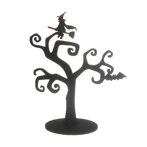 Design Criativo: A Decoração Halloween Árvore Temática de Mesa apresenta uma árvore de aspecto envelhecido e retorcido, adornada com enfeites exclusivos e temas relacionados ao Halloween que evocam a atmosfera mágica da temporada.