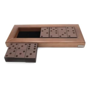 Decoração Jogo Dominó Madeira e Recouro Goods BR 182025 Jogos de dominó. Ideal para jogar com os amigos e familiares em qualquer ocasião. Produzido em Madeira de reflorestamento e recouro. Limpar com pano seco. Produto nacional, Possui base revestida com veludo. Dominó é um jogo de mesa que utiliza peças com formatos retangulares, em que uma das faces está marcada por pontos indicando valores numéricos. O termo é também para designar individualmente as peças que compõem este jogo. Homologação Inmetro: CE-BRI/ICEPEX-N 01264-25-25 Marca: Não Informado
