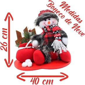 Decoração Natal Boneco De Neve Tecido Xadrez Natalino 26cm -