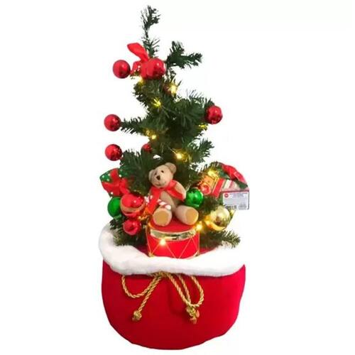Decoração natal saco de presente árvore urso luzes 60cm