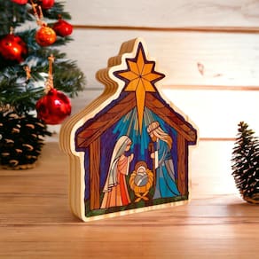 Adicione espiritualidade e beleza à sua casa com a Decoração da Sagrada Família Natal Capela Nascimento Jesus em Madeira. Essa linda peça inspira e encanta, sendo o destaque perfeito para a temporada de Natal.