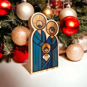A Decoração de Natal Minimalista Sagrada Família Jesus Madeira possui acabamento de impressão de alta definição diretamente na madeira de pinus, o que confere um visual autêntico e durável. Sua espessura de 25mm garante resistência e durabilidade.