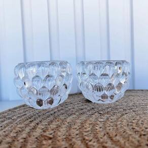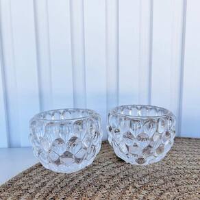 Decoração sala quarto dupla castiçal suporte porta-velas de vidro trabalhado bolha em relevo transparente incolor luxo.