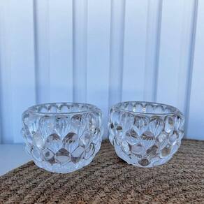 Dimensões dos castiçais: altura 5,7cm x largura 7,5cm x diâmetro da boca 6,4cm
