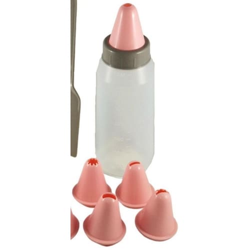 Passo 1 - Adicione com a ajuda da espátula o glacê real ou chantily no decorador de bolo Passo 2 - Escolha o bicoo a ser utilizado, encaixe-o na bisnaga já no glacê/Chantily e por fim, colocar o anel de fixação, girando-o até ficar bem justo Passo 3 - Incline a bisnaga em cima do bolo ou doce a ser decorado Passo 4 - Aperte levemente a bisnaga, até atingir o formato e espessura desejada para fazer a decoração