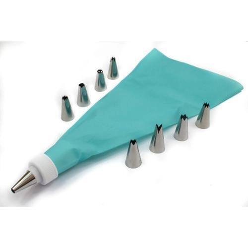 Especificações - 9 bicos inox 3,3 cm de altura / 1,7cm de diâmetro - 1 acoplador branco - 1 sacos de confeitar na cor verde material: plástico resistente Marca: Mount Ean: 7896030411021