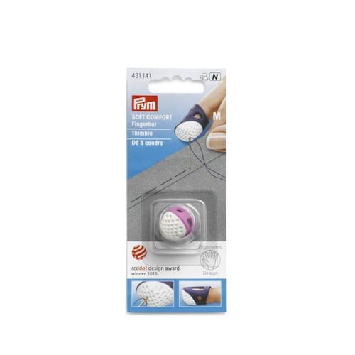 - Marca: Prym - Referência: 431 141 - Cor: Rosa e branco - Dedal ergonômico com alto conforto de uso - Eixo de plástico macio e ponta de plástico rígido - Tamanho: S - Material: Plástico