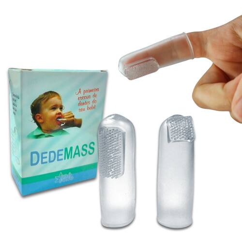 A Dedemass Pró-Fono: dedeira escova massageadora pode ser utilizada tanto para a higienização dos primeiros dentinhos do bebê, como nas terapias fonoaudiológicas. Contém dois tipos de Dedemass: uma com comprimento mais curto da região áspera, para a higienização dos dentes centrais e das saliências e reentrâncias curvas dos dentes laterais, e outra com comprimento mais longo da região áspera para a dentição lateral.