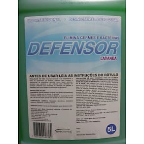 DEFENSOR 5 LITROS - CONCENTRADO.Defensor é um desinfetante a base de quaternário de amônio, indicado para utilização em qualquer ambiente que necessite remoção de vírus, germes e bactérias. Conforme, nota técnica n. 26/2020 da anvisa, defensor, pode ser utilizado para substituir o álcool líquido 70%, na limpeza e desinfecção de superfícies e objetos.Ponto de fulgor: Não inflamávelCOMPOSIÇÃO QUÍMICA:Alquilfenolpoliglicoleter Cloreto de alquildimetilbenzilamonioTensoativo não-iônicoTensoativo CatiônicoFragrância CoranteVeículoAut. Funcionamento ms: nº 3.03847.1Registro no ministério da saúde / ms: nº 3.3847.0008.002-1. Marca: Defensor - Silver Chemical