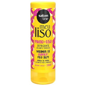 Modo de usar: Com os cabelos limpos, úmidos ou secos, espalhe o Defrizante Térmico Salon Line Meu Liso Amido Milho no comprimento e pontas, mecha a mecha massageando suavemente. Em seguida, inicie o processo de escovar com um secador, e se desejar, finalize com a prancha para potencializar o efeito super liso.Pra alinhar de vez, use a linha Meu Liso #Muito+Liso completa
