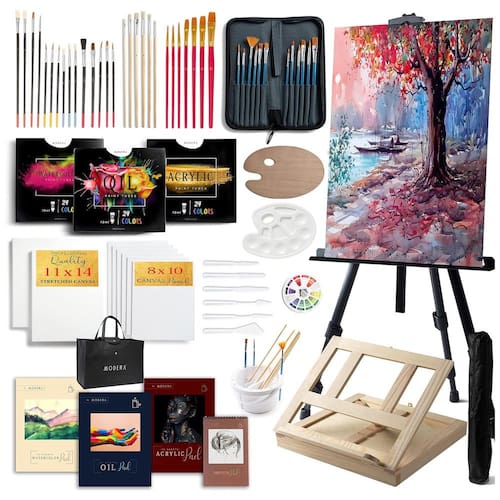 O CONJUNTO DE INICIALIZAÇÃO FINAL PARA ARTISTAS Pacote de Artes e Ofícios a Granel de 137 peças oferece todos os suprimentos, acessórios e ferramentas essenciais necessários para você pintar obras primas em óleo, acrílico e aquarela impressionantes Conjunto de pintura profissional perfeito para artistas iniciantes, intermediários e avançados, incluindo crianças, adolescentes, adultos e idosos CABECAS DE CAMPO E MESA DE ALTA QUALIDADE Liberte sua imaginação em praticamente qualquer ambiente Kit Inclui Cavalete de Campo de Ferro Leve Preto com Pernas Ajustáveis e Cavalete de Mesa de Madeira Adaptável com Gaveta Organizadora Integrada para zenamento. Pratique sua arte confortavelmente em casa, escola, aula de arte, fora e em movimento 72 CÂMARAS DE TINTA COLORIDAS COM PALETAS Experimente todos os principais meios graças aos 3 conjuntos de tinta de espectro total com 24 tubos de 12 ml de cores acrílicas, óleo e água. Tubos de tinta chegam perfeitamente embalados em suas respectivas caixas para zenamento limpo e fácil acesso. Também inclui paletas de madeira e 10 poços de plástico para mistura MUITO PAPEL, LONAS E ESCOVAS Escolha entre 6 telas de painel de qualidade profissional 20 x , 2 telas esticadas de 27 x e dezenas de opções de bloco de papel e livro de esboço projetadas para cada tipo de tinta Os artistas também gostam de 40 pincéis de pintura individuais, abrangendo cada tamanho, formato de cerdas, material e estilo de cabo exclusivos Marca: Não Informado