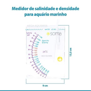 Como usar densímetro para aquário marinho: 1 - Antes de manipular o produto, lave-o em água corrente, de preferência água sem cloro. 2 - Lave bem as mãos. 3 - Encha o reservatório do densímetro com a água a ser testada até a água atingir o nível indicado water level . 4 - Posicione o densímetro na vertical e em um local reto. 5 - Caso tenha formação de bolhas de ar, não agite o densímetro, utilize a barra de plástico para desfaze-las. 6 - Faça a leitura de salinidade.