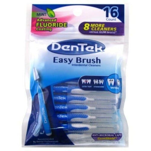 O pincel dental DenTek® Easy Brush (tm) Wide facilita a escovação dos espaços mais difíceis de alcançar da boca.