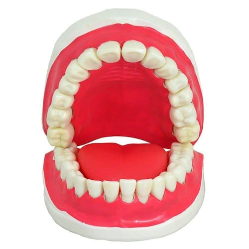 Modelo de dentição confeccionado em resina plástica com todos os dentes removíveis, com língua e escova.Composto por dentes molares, pré-molares, incisivos e caninosEmbalagem: