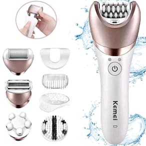 Depilador Kemei 8001 Feminino Recarregável Corpo Completo 5em1 Descubra a praticidade e a eficiência do Depilador Multifuncional Kemei KM-8001 Este aparelho 5-em-1 foi projetado para proporcionar uma experiência de depilação indolor e confortável, além de ser ideal para cuidar da pele de forma completa. Com uma cabeça depiladora, escova de limpeza facial, removedor de calos, e muito mais, ele se adapta facilmente às suas necessidades diárias de cuidados pessoais. Perfeito para remover até os pelos mais finos de várias partes do corpo, como pernas, axilas e linha do biquíni, o Kemei KM-8001 também traz a comodidade de ser sem fio e recarregável, proporcionando liberdade de movimentos e praticidade no uso. Com um design inteligente e portátil, este depilador é ideal tanto para uso doméstico quanto profissional. Sua cabeça lavável facilita a higienização, enquanto os acessórios adicionais ajudam a melhorar a circulação, esfoliar a pele e remover calos, tudo isso com uma única máquina. Transforme sua rotina de cuidados com a pele de forma prática e eficiente CONTEÚDO DA EMBALAGEM: 1 x Depilador Kemei KM-8001 1 x Protetor de lâminas 1 x Plug para depilador 1 x Plug para aparador de pelos corporais 1 x Plug para 1 x Plug para removedor de calos 1 x Plug para escova esfoliadora 1 x Cabo carregador 1 x Pincel de limpeza 1 x Manual do usuário CARACTERÍSTICAS: 5-em-1 Multifuncional: Inclui cabeça depiladora, cabeça de barbear, escova de limpeza facial, massajador e removedor de calos. Sem Fio e Recarregável: Bateria de longa duração com recarga rápida, garantindo liberdade de movimentos durante o uso. Eficiente e Seguro: Remove pelos de diversas partes do corpo, desde pernas até áreas sensíveis, sem dor ou irritação. Design Ergonômico: Compacto, leve e fácil de manusear, proporcionando uma depilação precisa e confortável. Cabeça Lavável: Para maior higiene, basta enxaguar sob água corrente após o uso. Operação de 2 Velocidades: Ajustável para diferentes tipos de pelos, desde os mais finos até os mais grossos. ESPECIFICAÇÕES: Modelo: KM-8001 Voltagem: 110-220V Bivolt Potência: 5W Bateria de Lítio: 1400mAh Tempo de Recarga: 2 horas Autonomia: 1,5 horas de uso contínuo Indicador de LED: Nível de bateria Tamanho: 15 x 5 cm Lâmina: Aço carbono