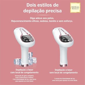 conta com 3 tres lâmpadas de 999. 000 disparos cada, para depilação a laser, e 1 uma de 500. 000 disparos para rejuvenescimento facial e 500. 000 para tratamento de acnes