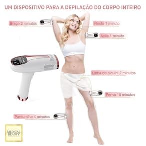 Depilador especial medical beauty md9095 Modelo sem fio md4420 unico no mercado 999.000 disparo - 3 filtros - pelos - reju - acnes - cor branco Certificado fda - anvisa Aconpanha o produto : - 1 depilador medical beauty n caixa - 3 filtros de procedimentos - pelos - acnes - rejuvenescimento - 2 oculos de protesão - 1 usuario - 1 operador - 1 fonte bivolt 110/220v - 1 manual em ingles - 1 manual em portugues - 1 maleta de especial azul grande 28 x 7 x 17 cm - 1 gel de procedimento 250g - 1 acido hialuronico 3 x 1 30ml - 1 manual de protocolo de procedimento como usar Descrição Anvisa n. 86132810133/220121 Depilador medical beauty : Produto , top de linha, laser ipl, para uso doméstico ou profissional com 999.000 disparos nao visivel no display Conta com 3 tres lâmpadas de 999.000 disparos cada, para depilação a laser, e 1 uma de 500.000 disparos para rejuvenescimento facial e 500.000 para tratamento de acnes , sardas. 5 intensidades de luz Bivolt: 110 a 220 volts automático Melhor custo x benefício do mercado, pague o equivalente a 10 sessões de depilação e tenha um aparelho para vida toda, isso mesmo, pois existem cartuchos para a reposição. Funciona em fio, o unico no mercado com essa configuração excelente Modelo lançamento, top de mercado excelente para homens e mulheres Sucesso nos estados unidos e na europa, agora no brasil Depilação segura e confortável - diga adeus aos seus indesejáveis pêlos Benefícios Diga adeus aos indesejáveis pêlos corporais e faciais. Área de contato de 5cm2 por disparo. Velocidade no tratamento, uma vez que seu homelight é ligado na tomada, você não precisa se preocupar que a sua bateria vai acabar antes de você terminar a sua sessão. Protocolo atualizado para resultados mais rápidos e maior eficácia. Clinicamente testado e recomendado por médicos dermatologistas e esteticistas. Design compacto de alta tecnologia, perfeito para viagens ou armazenamento. Cartucho de longa duração e de fácil . Pele lisa de seda e sem pelos encravados por toda a vida. Produto , recomendado pelos demartologistas e aprovado pelo orgão americano de fiscalização fda anvisa n. 86132810133/220121 Perguntas e respostas importantes: 1 o aparelho realmente trabalha com os pêlos de forma definitiva R: sim, é totalmente definitiva. 2 como funciona o aparelho R: são disparados feixes de luz contra a pele, destruindo definitivamente a raiz do pelo. Não existe segredo para a aplicação, pode ser tanto em homens como em mulheres. Com a correria do dia a dia, muitos de nós estamos optando por fazer a depilação definitiva por nós mesmos, em casa, com a mesma eficiência e qualidade de um aparelho utilizado em uma clínica profissional. Esse aparelho foi criado exatamente para esse propósito, é muito fácil de utilizar e você mesmo poderá fazer sua aplicação. 3 qual é o rendimento de 1 lâmpada R: cada disparo da lâmpada abrange uma área de até 5cm2. Para exemplificar, o tratamento nas axilas exige em média 6 disparos por sessão. Para o buço são necessários em média 4 disparos por sessão. No caso de meia-perna em média são necessários 50 disparos por sessão. 4 tem alguma restrição de uso R: o aparelho não possui praticamente nenhuma restrição. Somente não é recomendado para menores de 14 anos, mulheres gestantes e não deve ser utilizada em áreas que foram recém bronzeadas pelo sol e nem em regiões com ferimentos ou queimaduras. Não tem eficácia em pelos brancos e ruivos e pele negra. Obs ; produto profissional e domestico, facil de usar, funciona sem fio No manual as instruções tem mais detalhes - indicado por médicos dermatologistas - indicado por dermato funcional - indicado por estéticistas