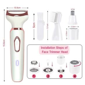 Ampla gama de usos: especialmente desenvolvido para depilação de todo o corpo, por exemplo, pêlos no lábio superior e inferior, rosto, pescoço, braços, axilas, pernas, biquíni. O pescador pode segurar de forma rápida e confortável pêlos de pêssego ou cabelos finos, barba por fazer, despenteados ou grossos. Macio e indolor: as lâminas de aço inoxidável são macias e antialérgicas, adequadas para peles sensíveis. Macio, seguro e indolor. Recarregável: diga adeus ao problema de inserir e trocar a bateria. O tempo de carregamento é de 4 horas. Elegante, portátil e durável, ótimo para viagens e viagens. Surpreenda seus entes queridos com essa ideia de presente. Também é muito fácil de limpar. Basta remover a cabeça do aparador e limpar com uma escova ou enxaguar com água corrente. Atendimento ao cliente amigável sempre ao seu lado. Nós nos esforçamos para fornecer a você produtos da melhor qualidade e o melhor atendimento ao cliente. Serve para todos Este modelo de ferramenta versátil vem com cabeças de barbear 4 em 1 projetadas para depilar todo o corpo, incluindo rosto, braços, axilas, pernas e área do biquíni. Nota: Para evitar queimaduras, cortes ou dores, mova-se lentamente. Não pressione com força. Não aplique pressão ou a pressão é muito leve. Leve e portátil, leve com você. Ideias de presentes atenciosas\ NProdutos de alta qualidade e embalagens requintadas o tornam um presente ideal para seus entes queridos. Você pode carregar por meio do cabo USB. Ao carregar o barbeador, conecte qualquer porta USB, por exemplo, computador, banco de energia, plugue de parede.\ nPotência nominal: 2 W\ nTempo de carregamento: 4 horas úteis\ nTempo: corte de cabelo e barba 30 minutos\ nTensão nominal de entrada nos primeiros 60 minutos: 5V, 1A Lista de embalagem: barbeador elétrico feminino X 14 lâminas de barbear (senhora, sobrancelhas, barba e corpo, nariz/orelhas) X 1 x cabo de carregamento USB X 1 1 x usuário