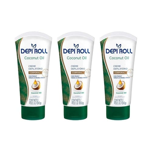 Depilatório depiroll creme corporal 100g óleo de coco - kit com 3un
