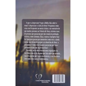 SINOPSE Ao contrário do que muitos pensam, na Palavra de Deus existe casos de pessoas que passaram por um estado de profunda tristeza, Salomão, Elias, e outros; próprios Charles Spurgeon, passou por momentos como este. Portanto nesta obra encontraremos exposições da Escritura, não só de alguém que fala sobre um assunto, mas de alguém de viveu está história, e isso faz de livro uma obra única e emblemática.