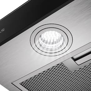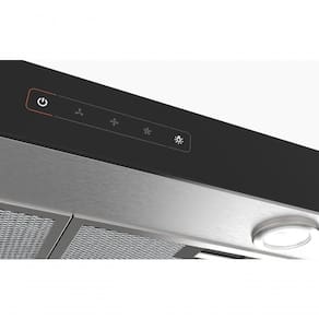 Compatível com fogões de 4 e 5 bocas, possui 80 cm de largura, 3 velocidades, 124 watts de potência total e 390 m/h de capacidade de sucção. Conta também com 2 lâmpadas de LED de 2 watts de potência cada e filtros de alumínio lavável e carvão.