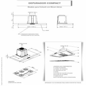Instalacao apenas de Embutir Observacao, este modelo deve ser embutido em armario aereo, acima do cooktop fogao, o depurador e fixado por parafusos no proprio movel