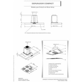 Obs Este modelo deve ser embutido em armário aéreo, acima do cooktop fogão, o depurador é fixado por parafusos no próprio móvel