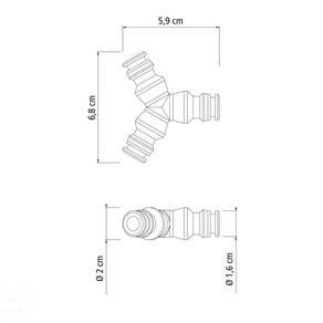 Cuidar de suas plantas se tornou mais fácil com a derivação Y Tramontina com 3 saídas em plástico para mangueiras 1/2, 5/8 e 3/4 polegadas. Seu formato em Y permite a conexão de 3 mangueiras, sendo perfeito para jardins ou lugares que necessitam de um sistema de irrigação maior e diferenciado. Orientações - Produto fabricado com matéria-prima de alta qualidade proporcionando uma irrigação precisa e confiável.- Através de engates rápidos, permite a conexão de 3 mangueiras para criar 2 linhas de irrigação. Características Gerais EAN13 7891117006954 DUN14 17891117006951 NCM 3917.40.90 Peso Líquido 0,0143 kg. Peso Bruto 0,0151 kg. Metragem 0,000082 m³. Dimensões Embalagem (Compr. X Larg. X Alt.) 68x 60x 20 mm. Dimensões Produto (Compr. X Larg. X Alt.) 68x 59x 20 mm. Cor 1 009900 Hexa Observações - O adaptador é usado para unir três mangueiras através de engates rápidos de 1/2", 5/8" e 3/4".- Água: pode faltar. Não desperdice.- Para descarte dos produtos e embalagens siga as orientações de reciclagem vigentes.