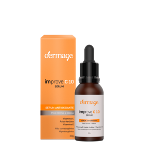 O Sérum Antioxidante Dermage Improve C 10 previne os sinais de envelhecimento e combate os radicais livres. Sua fórmula com com Vitamina C a 10%, Ácido Ferúlico e Vitamina E é de rápida absorção e tem toque seco, que promove a luminosidade e hidratação cutânea.