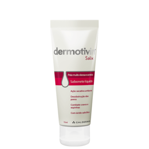 Sabonete líquido para pele muito oleosa e acneica. Dermotivin Salix possui efeito secativo, desobstrui os poros e auxilia na diminuição de cravos e espinhas.