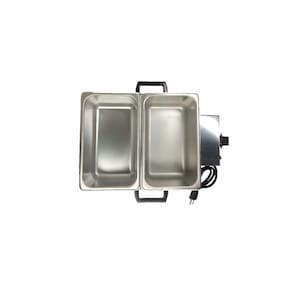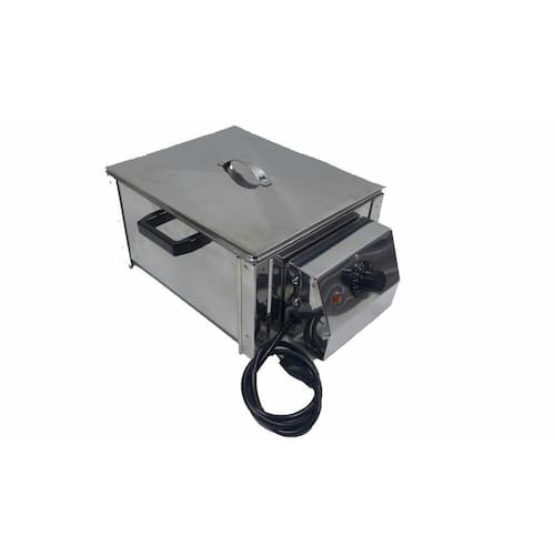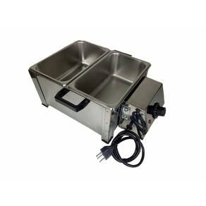 Derretedeira Industrial Inox com 2 Cubas de 2,5 Kg cadaPossui corpo e cuba em Aço Inox 430 que não enferruja - oxida.Possui termostato regulável permitindo que o produto esteja sempre na temperatura adequada.Aquecimento em banho-maria: Não queima e não altera o sabor e as propriedades do chocolate.Acompanha tampa em inox.Ideal para derreter e manter derretido o chocolate.Indicado para Culinaristas, Docerias, Sorveterias, Buffets em geral (Hot Dog/Caldos/Sopas/Molhos/Alimentos) e até para utilização em casa.Para cuidados pessoais como Derretedor de Cera Depilatória. Para terapias relaxantes como Aquecedor de Pedra.Capacidade: 2 Cubas - 2,5 KG (cada)Consumo: 750 W / 0,75 kw/hTensão: 220 V
