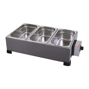 Derretedeira Industrial 3 Cubas 3,3kg Dr2 Marchesoni Banho-maria Multiuso Inox 220v Derretedeira Industrial 3 Cubas DR.2 Marchesoni. São ideais para confeitarias, docerias, cafeteiras, sorveterias, buffets, festas e eventos. As Derretedeiras Industriais são fabricas em aço inoxidável e possuem cubas gastronômicas removíveis que facilitam o trabalho. As cubas são em aço 304 (material indicado para contato com o alimento), além disso, possuem tampas em todos os modelos. O termostato regulável permite que você defina a temperatura ideal para derreter ou manter o chocolate aquecido. Podem ser utilizados por estabelecimentos comerciais, pequenos empreendedores e para quem ainda está começando e faz a sua produção de doces em casa. Reservatório removível, aquecimento em banho-maria. ACOMPANHA: Tampa em inox. CAPACIDADE: 3 cubas de 3,3kg. CONSUMO: 1.500W/1,50kw/h. PESO: 5,59kg. DIMENSÕES(CxAxL): 61x17,7x33cm. Nossa política de qualidade apoia-se no Sistema de Gestão de Qualidade NBR-ISSO 9001:2008. Produto testado e aprovado pelo INMETRO e que estará sempre pronto para atender as necessidades da sua cozinha. Derretedeira Industrial 3 Cubas DR.2 Marchesoni é na Atau. Apresentação do Produto - Marca - Marchesoni Modelo - DR.2.331/DR.2.332 Frente - 33cm Altura - 17,7cm Profundidade - 61cm Peso - 5,59kg Consumo - 1.500W/1,50kw/h