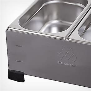 Derretedeira profissional inox 2. 5 kg 2 cubas marchesoni se você procura uma derretedeira para manter suas caldas quentinhas e ideais para consumo, essa incrível derretedeira marchesoni da linha master é perfeita para aquecer e conservar quente: chocolates, caldas, recheios e coberturas, garantindo a consistência e o sabor do chocolate. Fabricada em aço inoxidável, acompanha a concha. Pode ser utilizada por estabelecimentos comerciais, pequenos empreendedores e para quem ainda está começando e faz a sua produção de doces em casa. É ideal para confeitaria, docerias, cafeterias, sorveterias, buffets, festas e eventos. Um show de qualidade, você vai ficar com água na boca. Diferenciais: - possui aquecimento por banho-maria. Não queima e não altera o sabor e as propriedades do chocolate; - possui termostato regulável! seu chocolate sempre na temperatura ideal. Ideal para derreter e manter derretido o chocolate; indicado para culinaristas, docerias, sorveterias, buffets em geral e até para utilização em casa; para cuidados pessoais como derretedor de cera depilatória. Para terapias relaxantes como aquecedor de pedra. Sobre o : _ fale com a gente. Seu vai sair barato! sobre a floripa shop: - vendas realizadas e entregues em todo o território nacional; - parceria com inúmeros marketplaces; - seu produto seguramente vai chegar e cumprir o que promete; - vendemos apenas produtos de alta qualidade. Perguntas frequentes dos nossos clientes: - o produto é novo? sim, o produto é novo, e lacrado na caixa - o produto tem garantia? sim, este produto possui garantia contra defeitos de fabricação. Características do produto cor inox material da cuba aço inox material do corpo aço inox cuba gastronomica quantidade de cuba 2 potência: 750w capacidade: 2,5 kg selo do inmetro portaria 371 sim marca: marchesoni conteúdo da embalagem: 1 derretedeira dimensões aproximadas do produto: 41 x 29 x 20 cm dimensões aproximadas da embalagem: 33x 33 x 42 cm peso aproximado do produto: 2,6 kg peso aproximado da embalagem: 3,4 kg garantia do fornecedor: 6 meses informações adicionais: acompanha cuba e tampa em inox. Código de barras: 7898131060092
