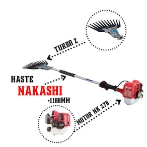 TIPO: Derriçadeira LateralDIÂMETRO DA HASTE: 25 mmCOMPRIMENTO DA HASTE: 1100 mm Cód.: 55-12400EIXO CARDÃ: 7 x 7MODELO DO KIT DERRIÇADOR: KD 257-T2RELAÇÃO: 01:03,8GARRAS: 12CURSO DE ÊMBOLO: 10 mmMOTOR: Nakashi nk 270TIPO DO MOTOR: 2 tempos, gasolinaCILINDRADAS: 25,4 ccTIPO DE CARBURADOR: DiafragmaCOMBUSTÍVEL: Gasolina e óleo 2T (25:1)CAPACIDADE DO TANQUE DE COMBUSTÍVEL: 0,6 lt Composição:1 Mãozinha derriçadeira de café 20 dedos: fabricado em alumínio injetado em alta pressão, com coroa e pinhão desenvolvido e produzidos com a mais alta tecnologia garantindo sua resistência e performance.1 Motor: motor Nakashi de 2 tempos a gasolina, refrigerado a ar e tanque de combustível com capacidade para 0,6L.1 Haste 1,5 metros: aço galvanizado1 Empunhadeira de borracha.Leve e versátil as Derriçadeiras nakashi, podem ser encontradas em diversos modelos, para uso , de baixa ou alta intensidadeVeja as 5 principais vantagens doderriçador nakashi: