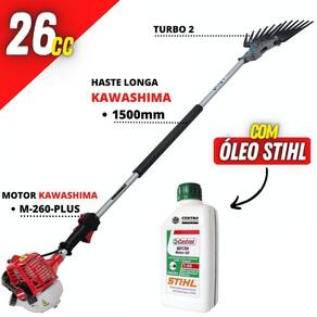 Derriçadeira Premium Kawashima KWD2610T2L com Haste Longa 1500mm Motor Kawashima 25,6cc e Kit Turbo 2 ;+ ;Óleo Castrol Stihl 500ml