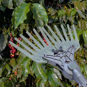 Com saída caixa de transmissão de 26mm, eixo cardan redondo de 8mm com 9 estrias, e garras duplas, essa derriçadeira é resistente e durável. O suporte da garra em alumínio injetado proporciona ainda mais estabilidade e eficiência durante a colheita.